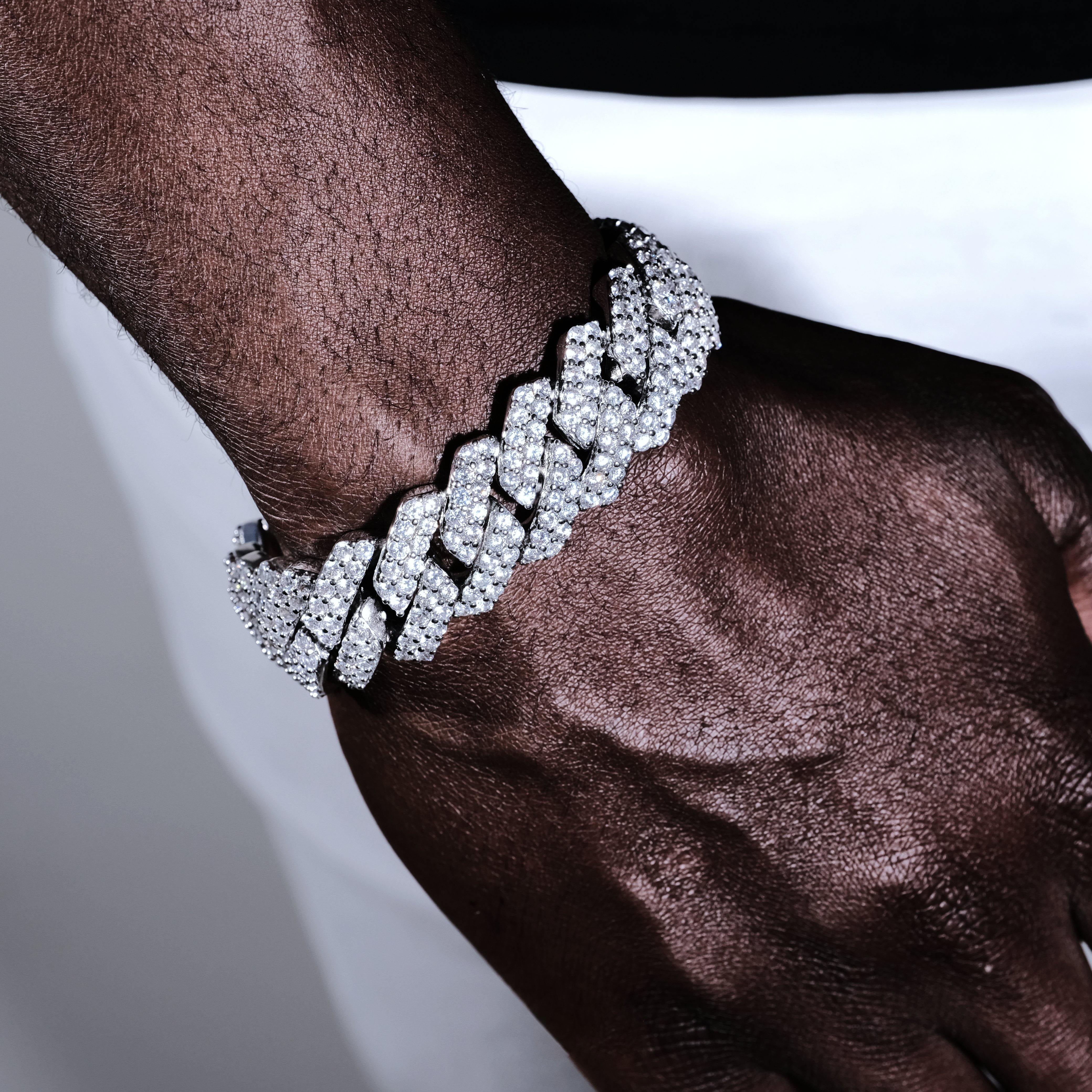 New 2row prong setting Cuban Bracelet are now available with our VVS simulated diamonds which tested to ensure perfect clarity with an optimal price. 19mm features iced out the clasp and are handcrafted to perfection.