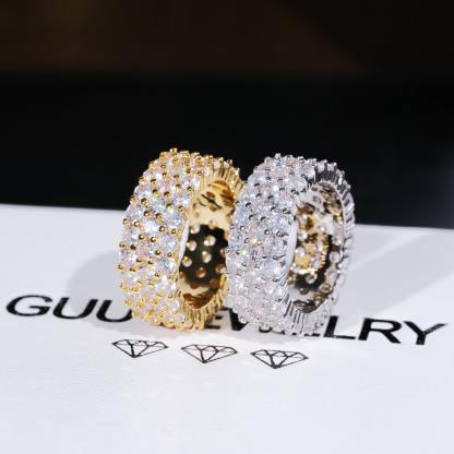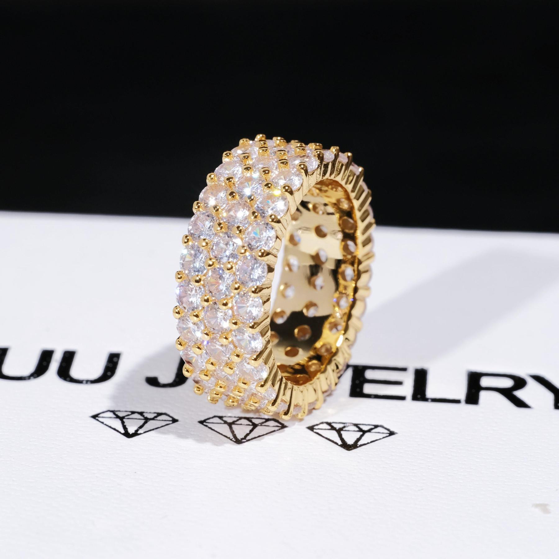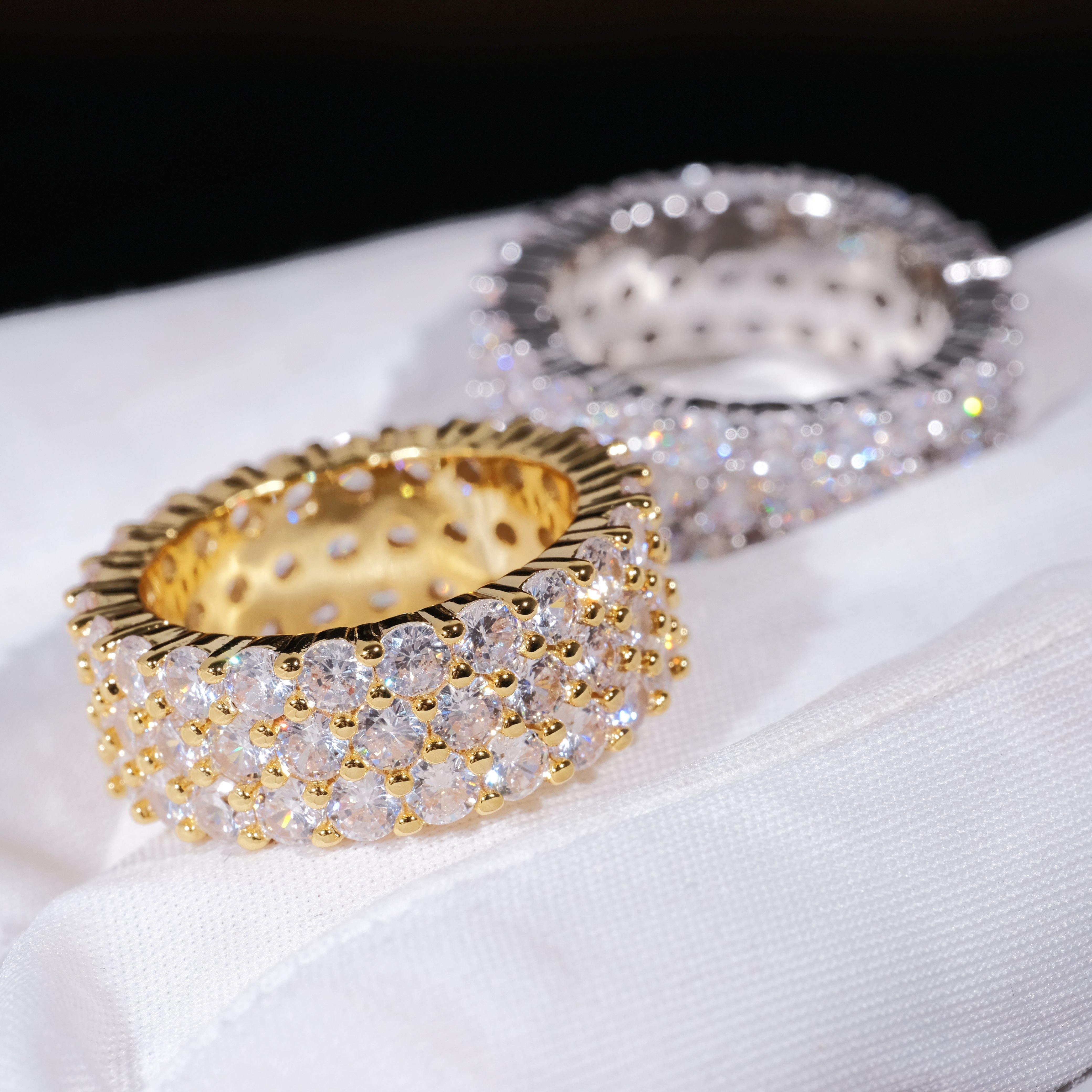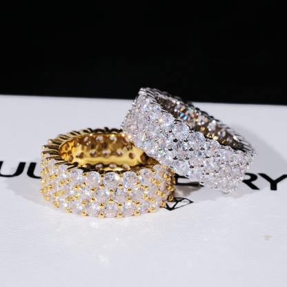 GUU introduces you with 3 Row Eternity Ring,Shine up your fingers with this shiny Eternity Hip Hop Ring. 3 Row 4MM CZ Simulated Diamonds. The Bling Bling Shine on this Ring is Incredible. 18K Gold Wrapped over look and feel like solid Gold for a fraction of the cost and keep on shining. Order your bling bling ring today and Style like a rap star!