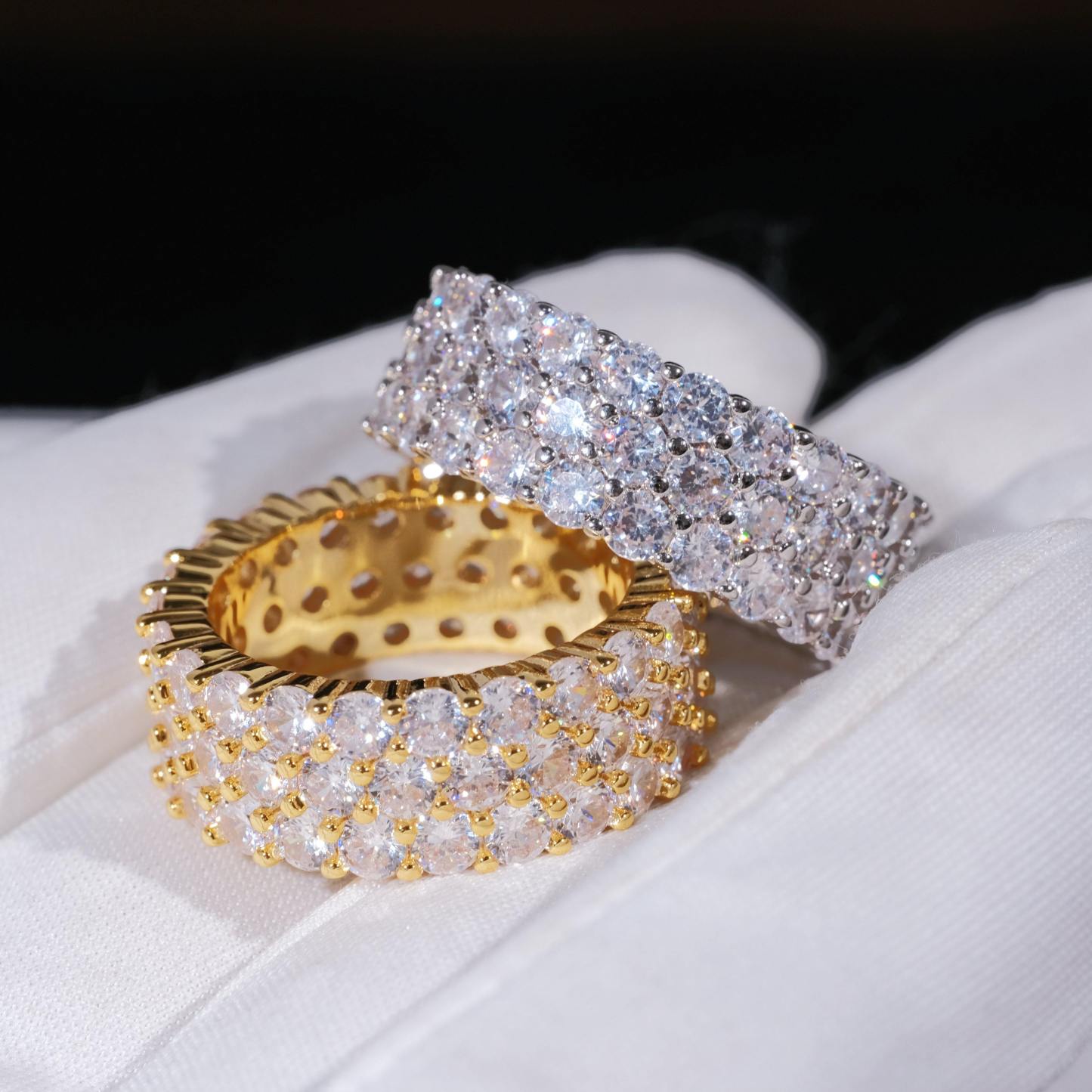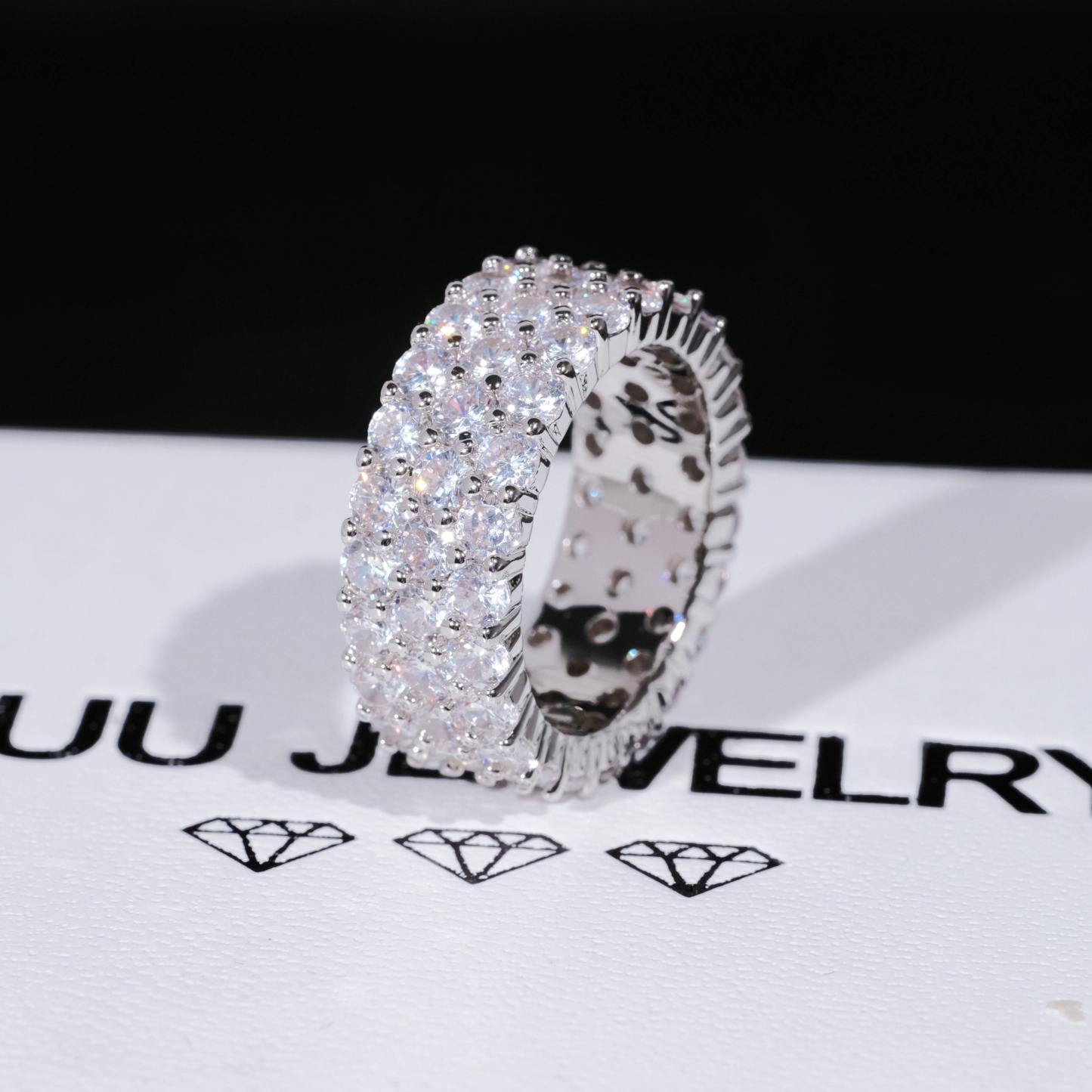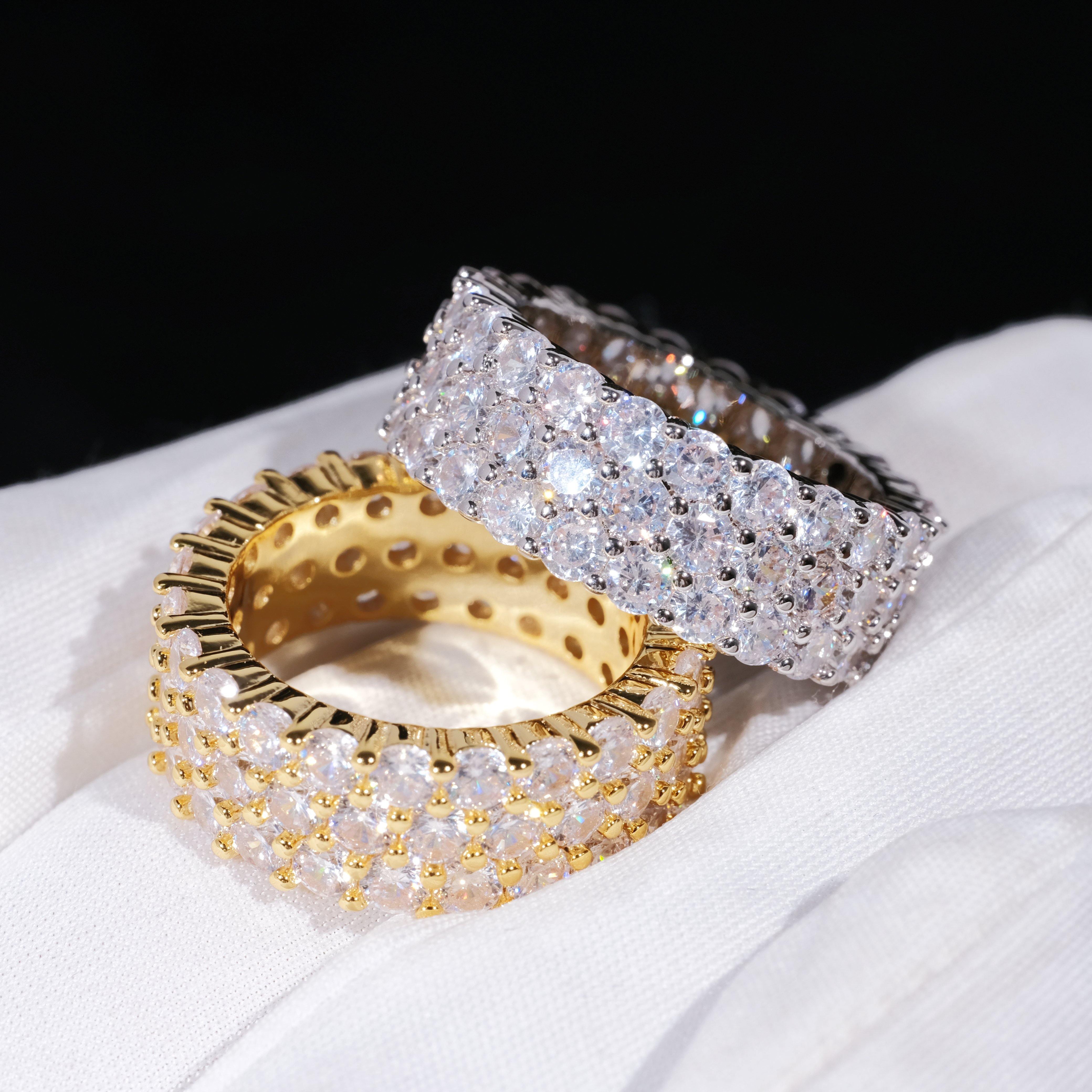 GUU introduces you with 3 Row Eternity Ring,Shine up your fingers with this shiny Eternity Hip Hop Ring. 3 Row 4MM CZ Simulated Diamonds. The Bling Bling Shine on this Ring is Incredible. 18K Gold Wrapped over look and feel like solid Gold for a fraction of the cost and keep on shining. Order your bling bling ring today and Style like a rap star!