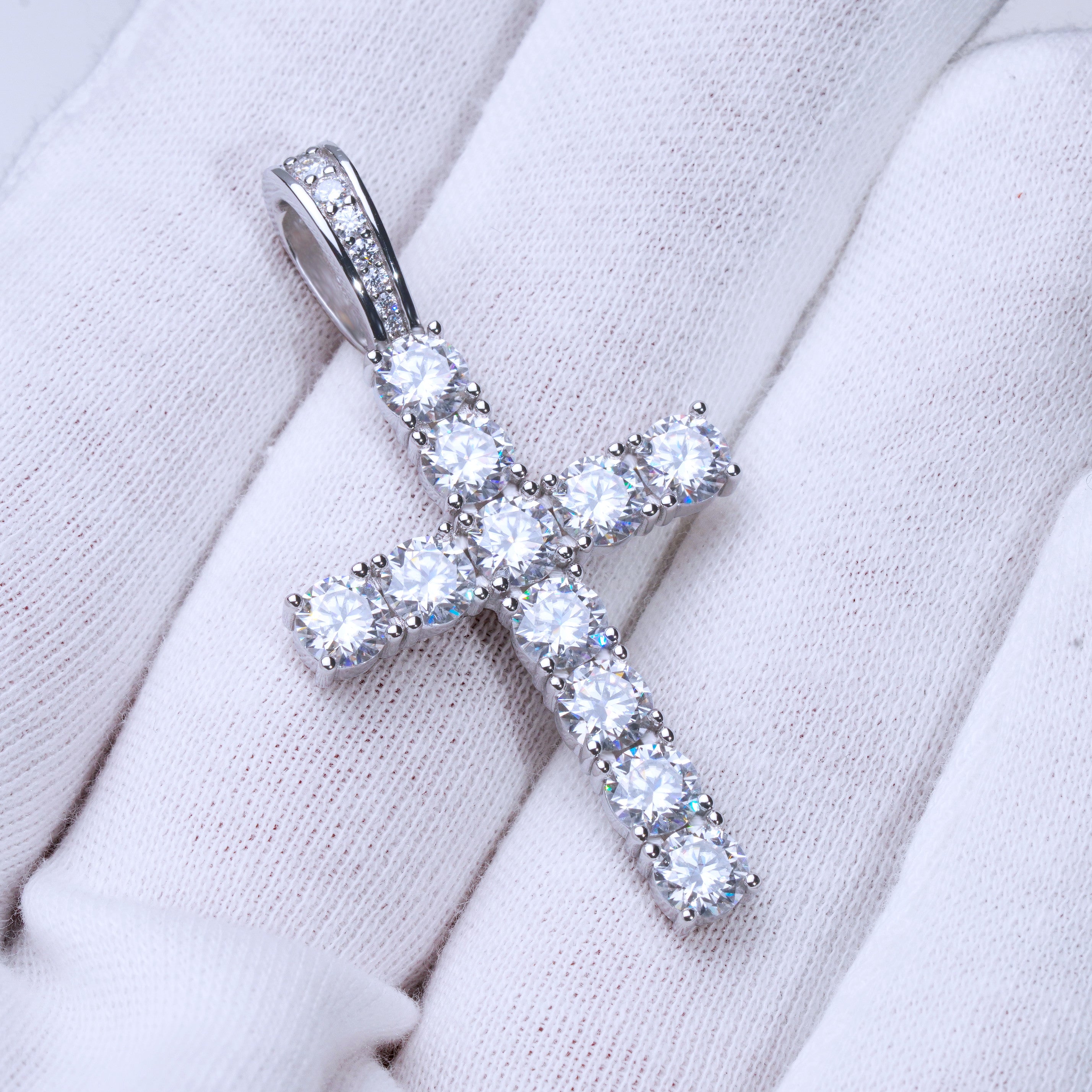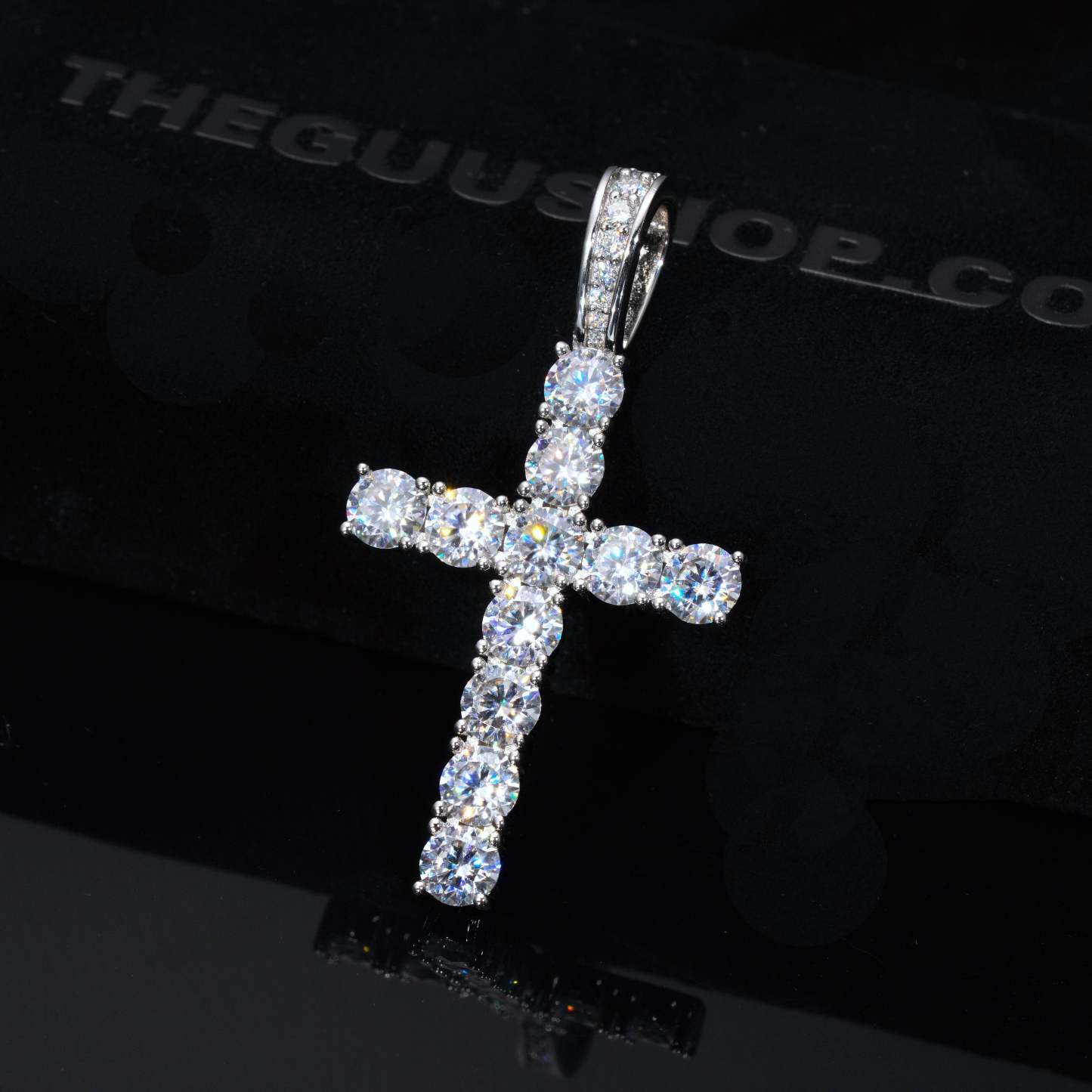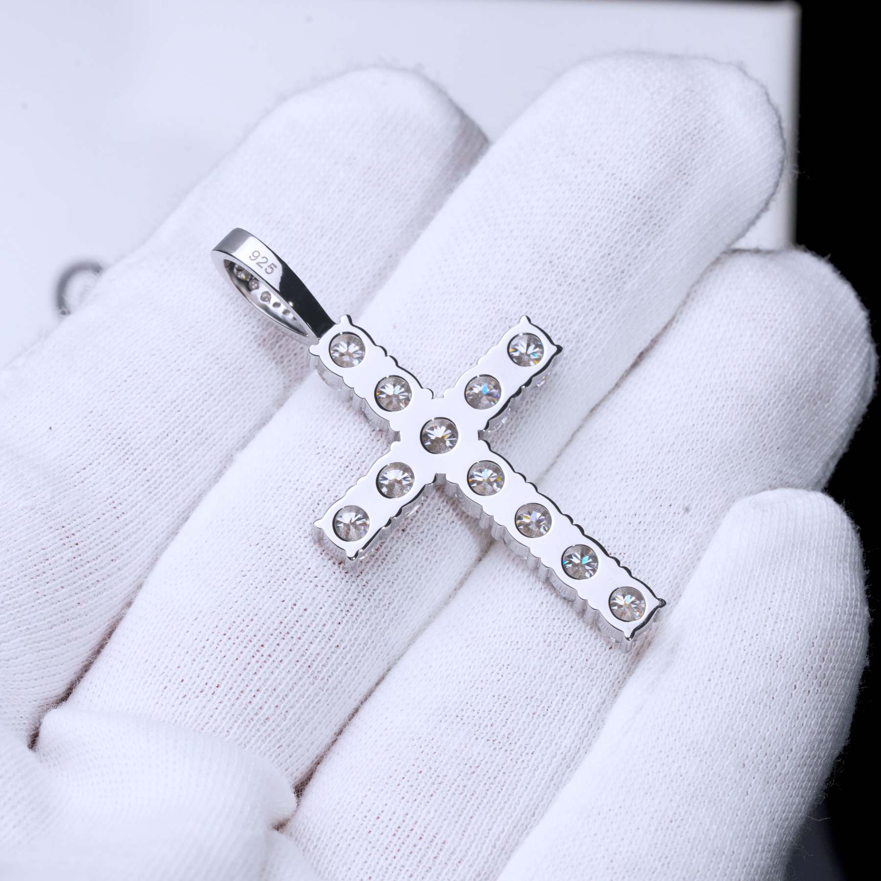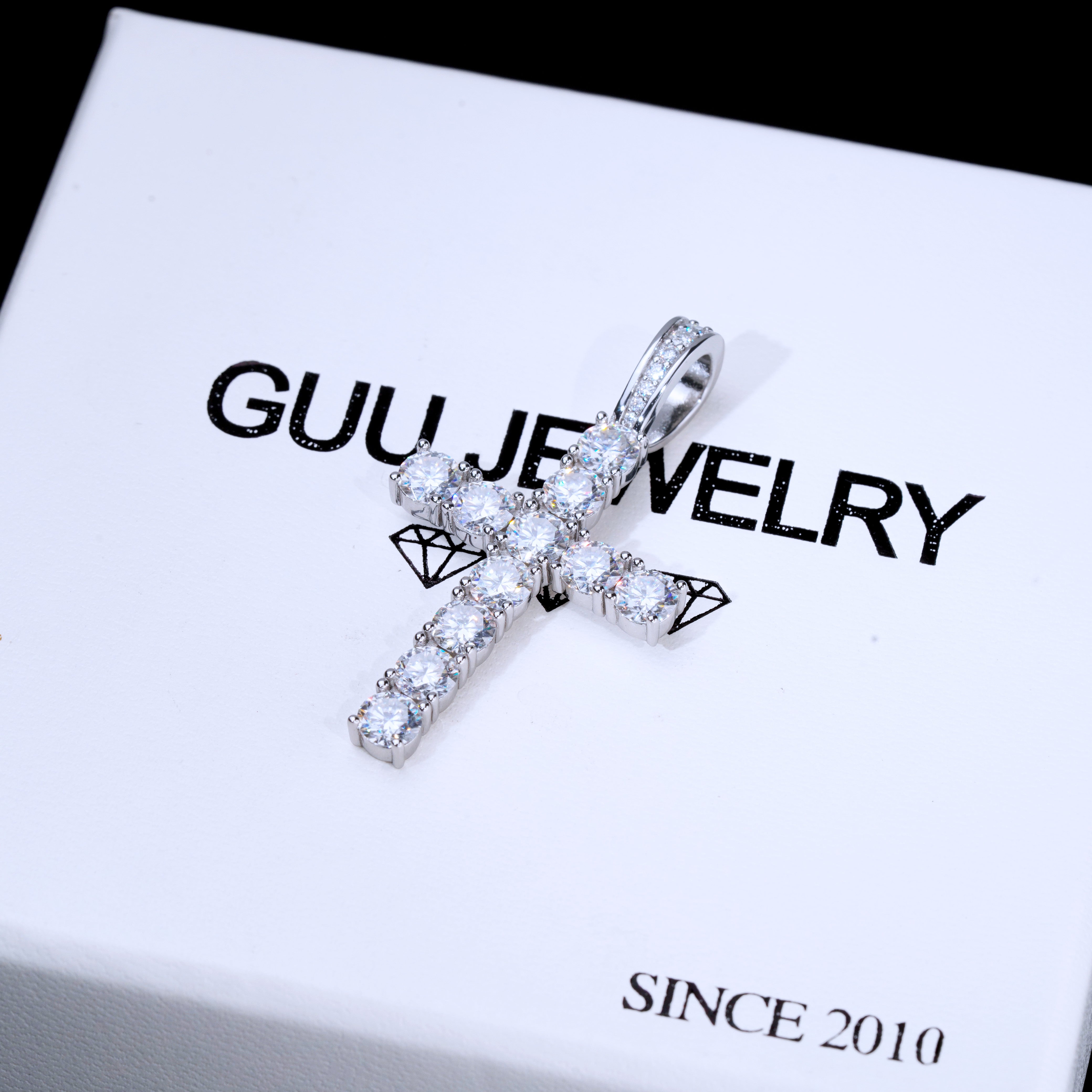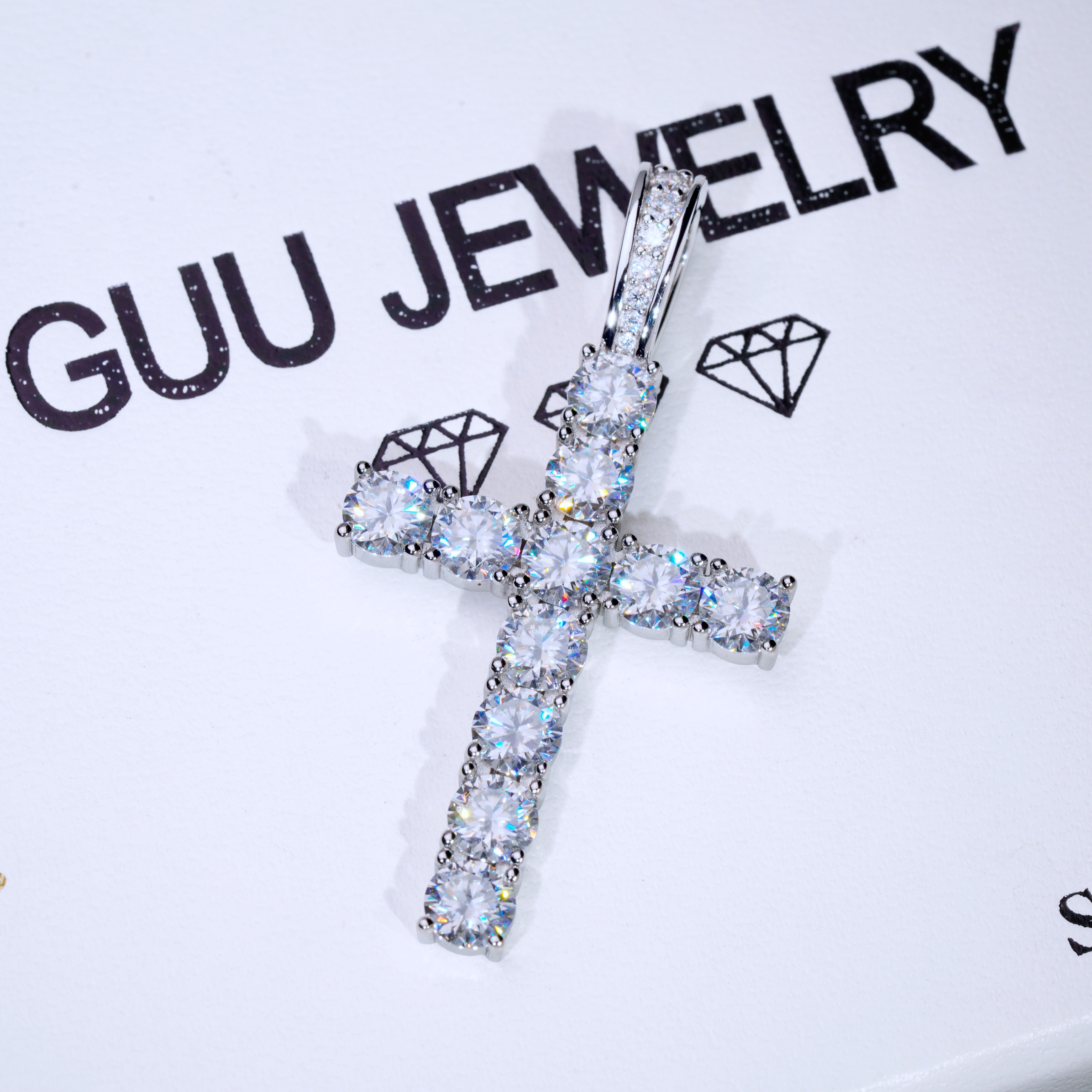Our excellent cut moissanite stones are colorless and VVS1 clarity. Due to their high light refraction rate, they hit harder than any type of CZ, fake diamonds and even natural diamonds. They have a mohs hardness rating of 9.25 out of 10 and will test positive as diamonds on most handheld diamond testers. These are 5mm sized, big rocks. A pendant like this made in natural diamonds will cost you over $2500. Get the exact look and feel for a fraction of the price!