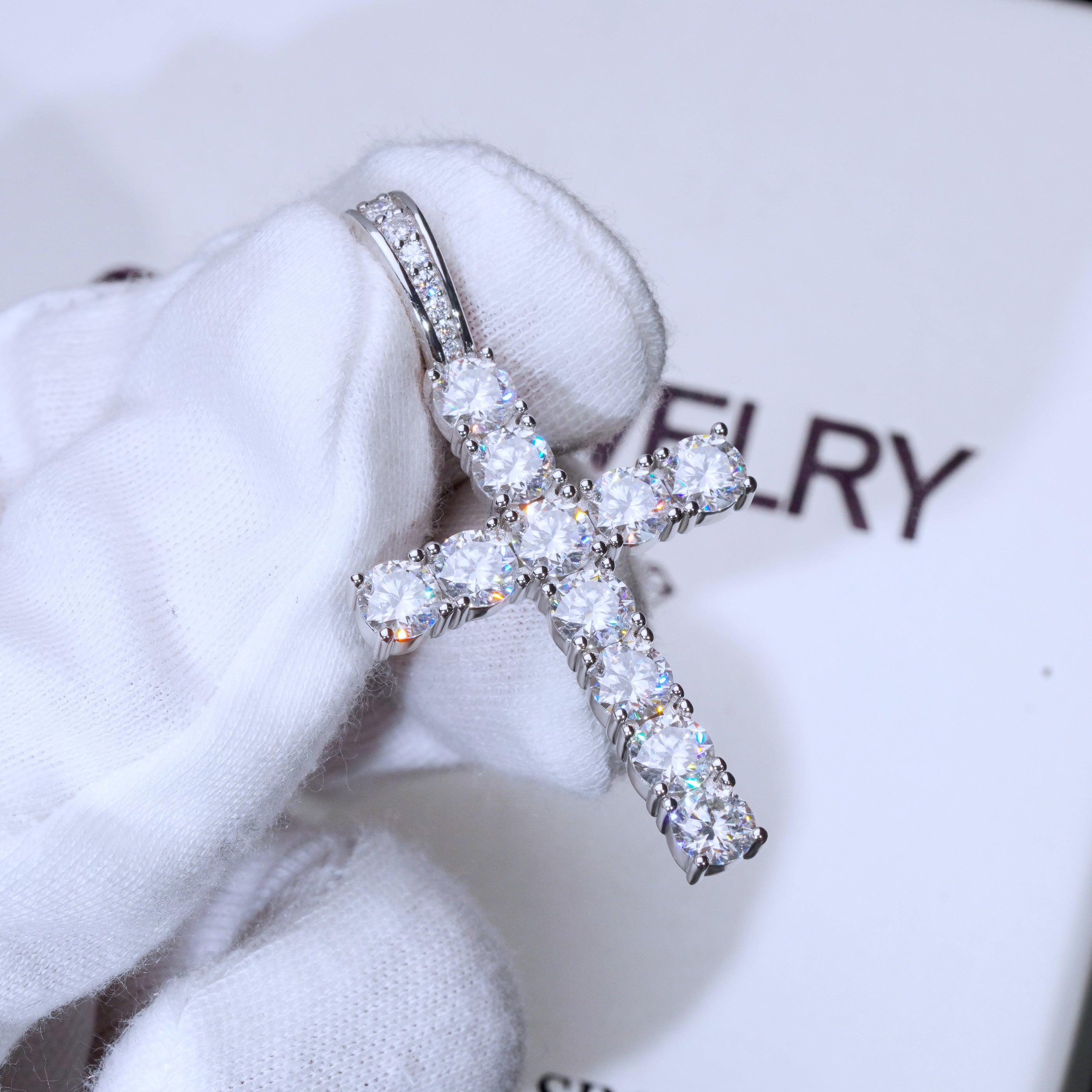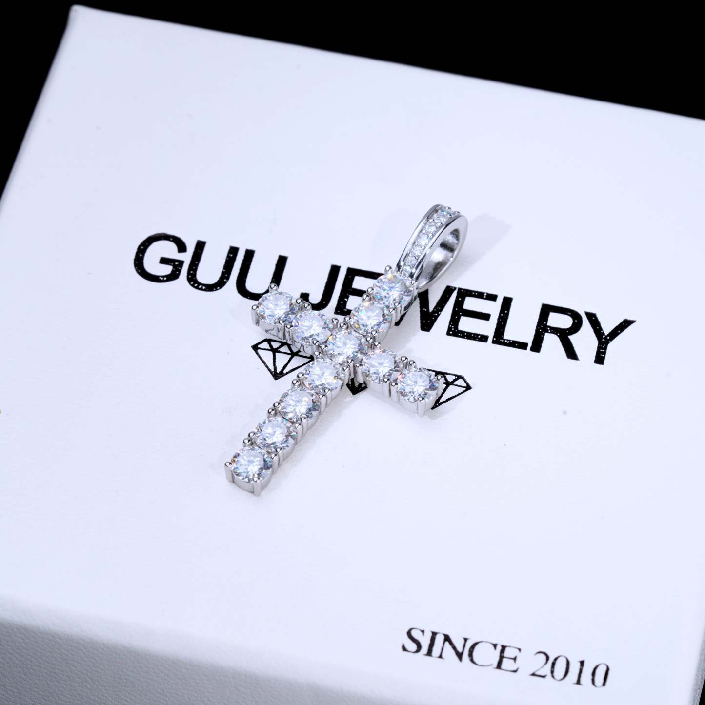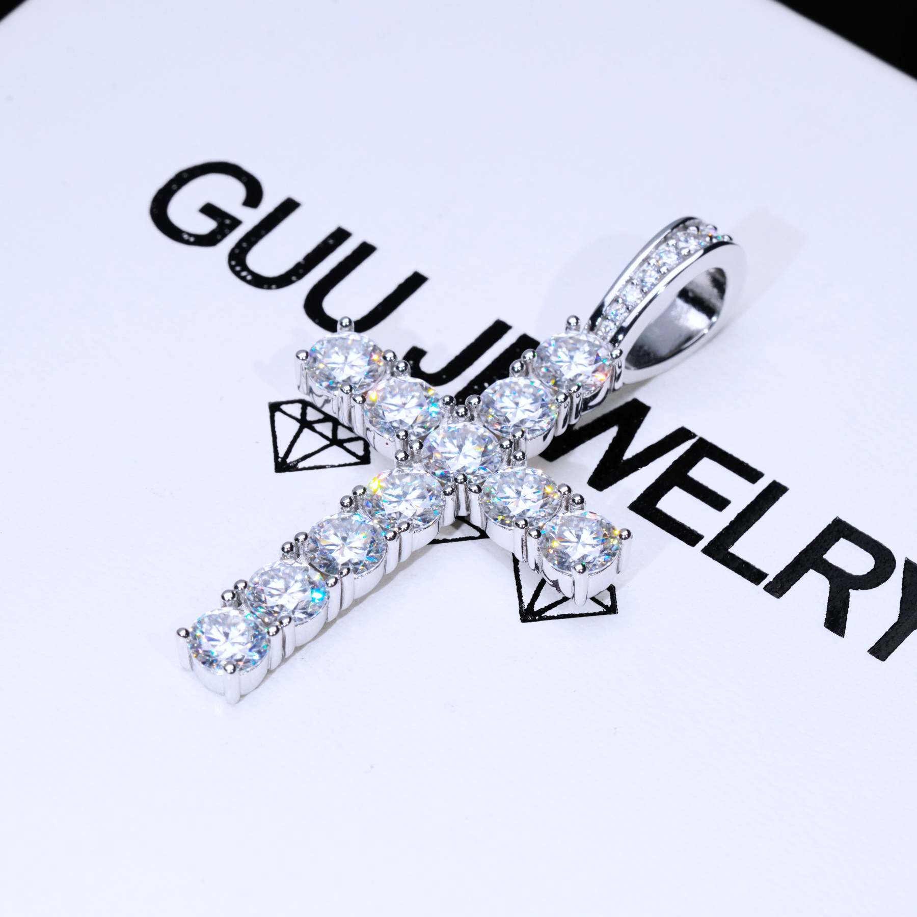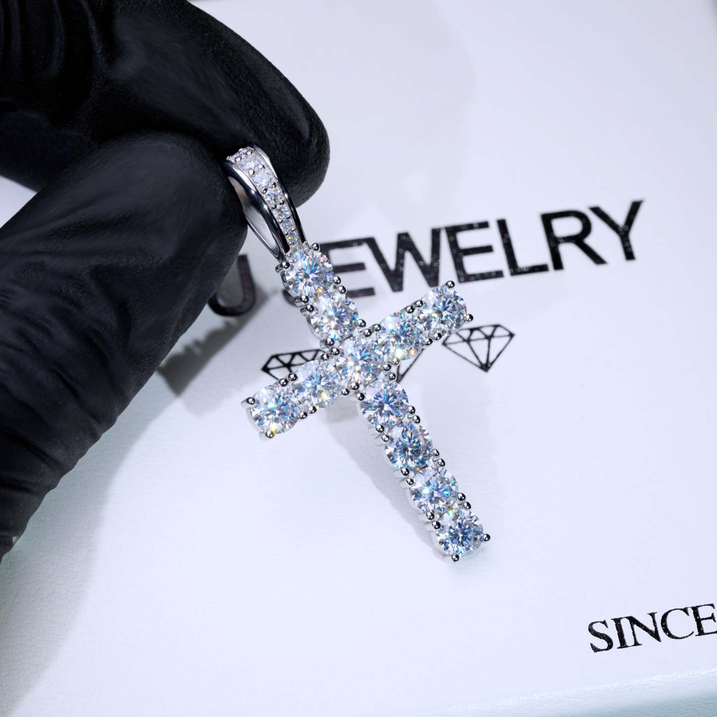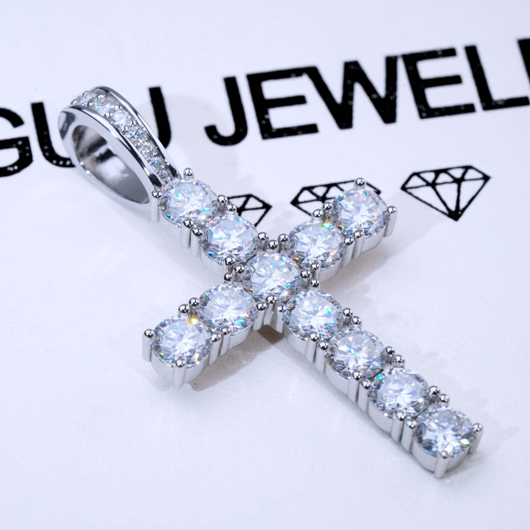 Our excellent cut moissanite stones are colorless and VVS1 clarity. Due to their high light refraction rate, they hit harder than any type of CZ, fake diamonds and even natural diamonds. They have a mohs hardness rating of 9.25 out of 10 and will test positive as diamonds on most handheld diamond testers. These are 5mm sized, big rocks. A pendant like this made in natural diamonds will cost you over $2500. Get the exact look and feel for a fraction of the price!