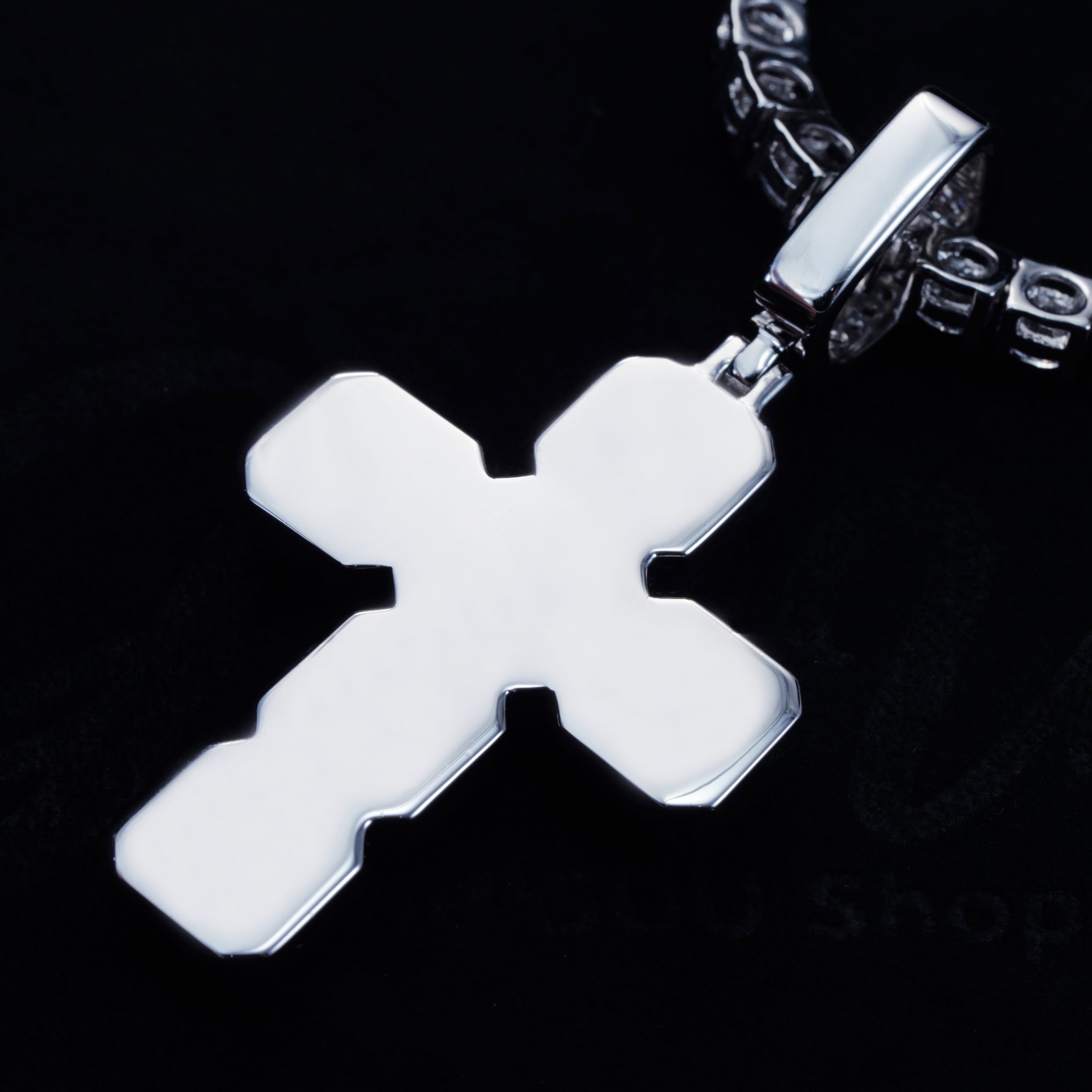 This incredible Gemstone Cross pendant will turnheads everywhere you go! It features tight honeycomb set round brilliant stones, surrounded by large pointer stones on the border and all around the sides of the piece. It features incredible detailing such as beaded edges. Order yours today!