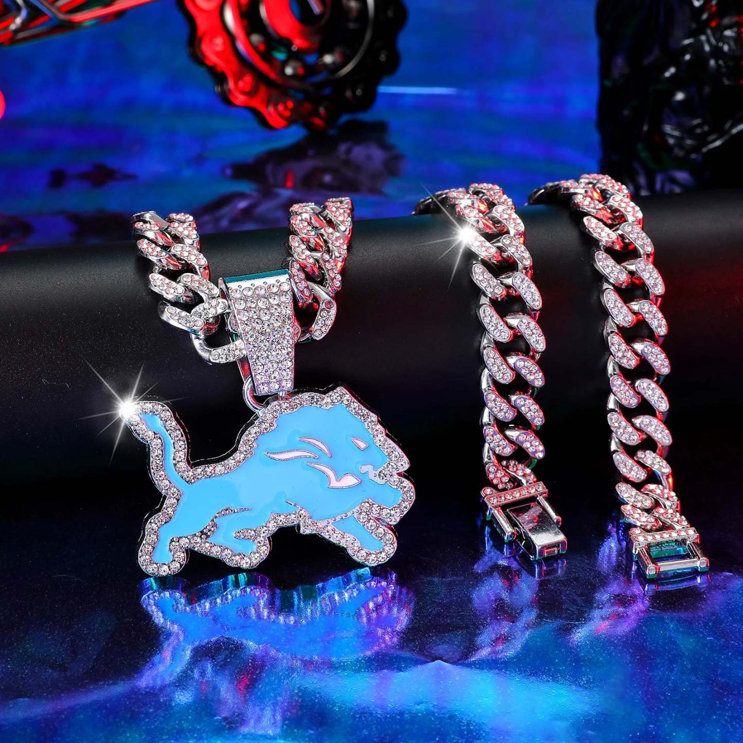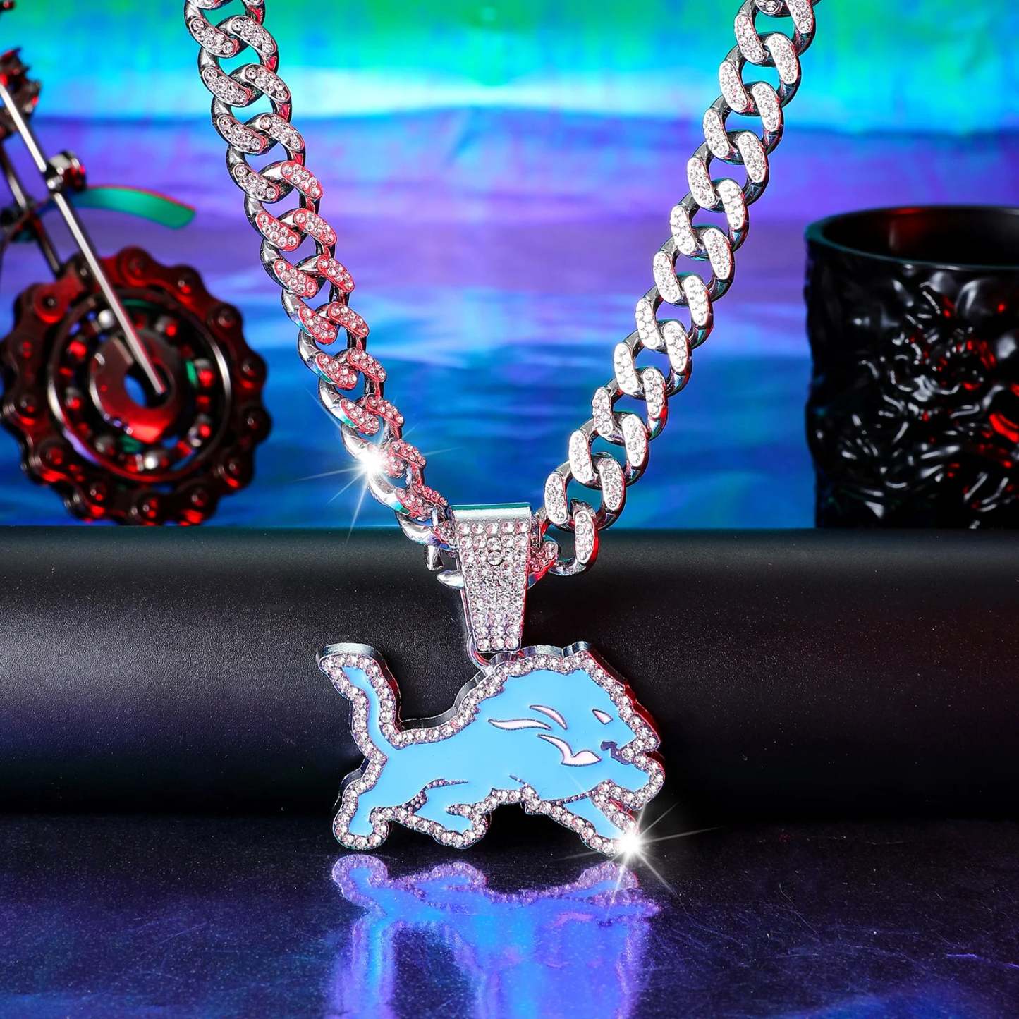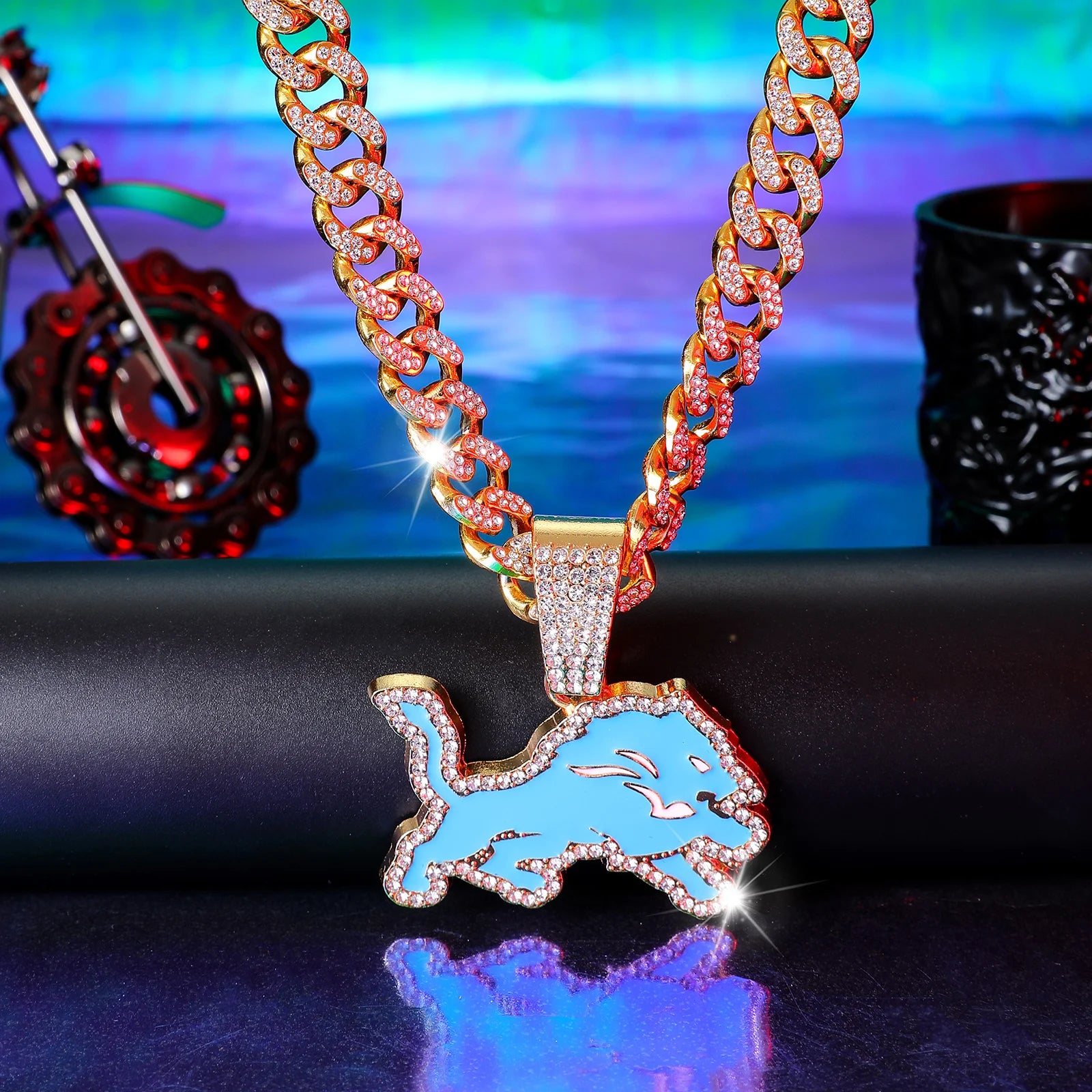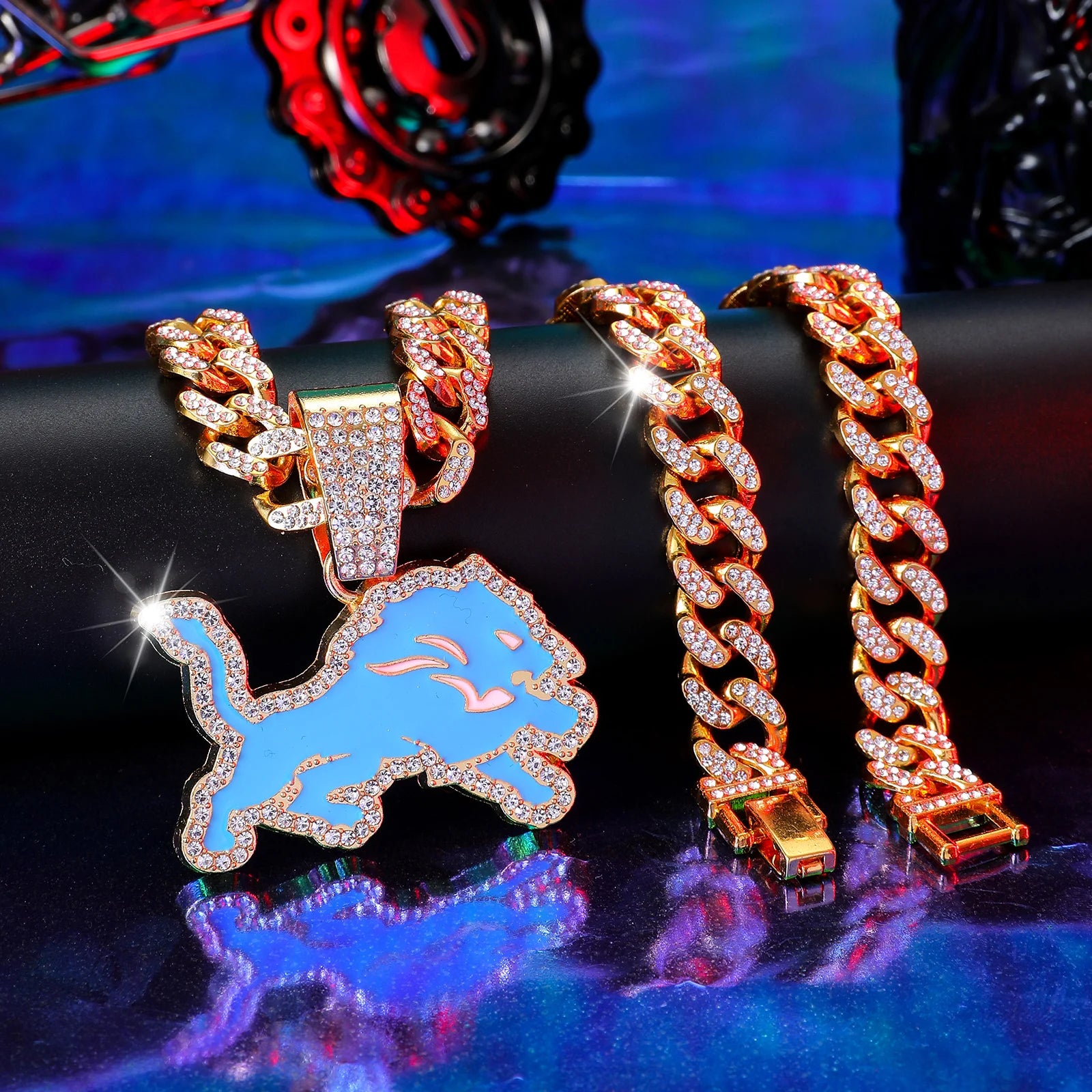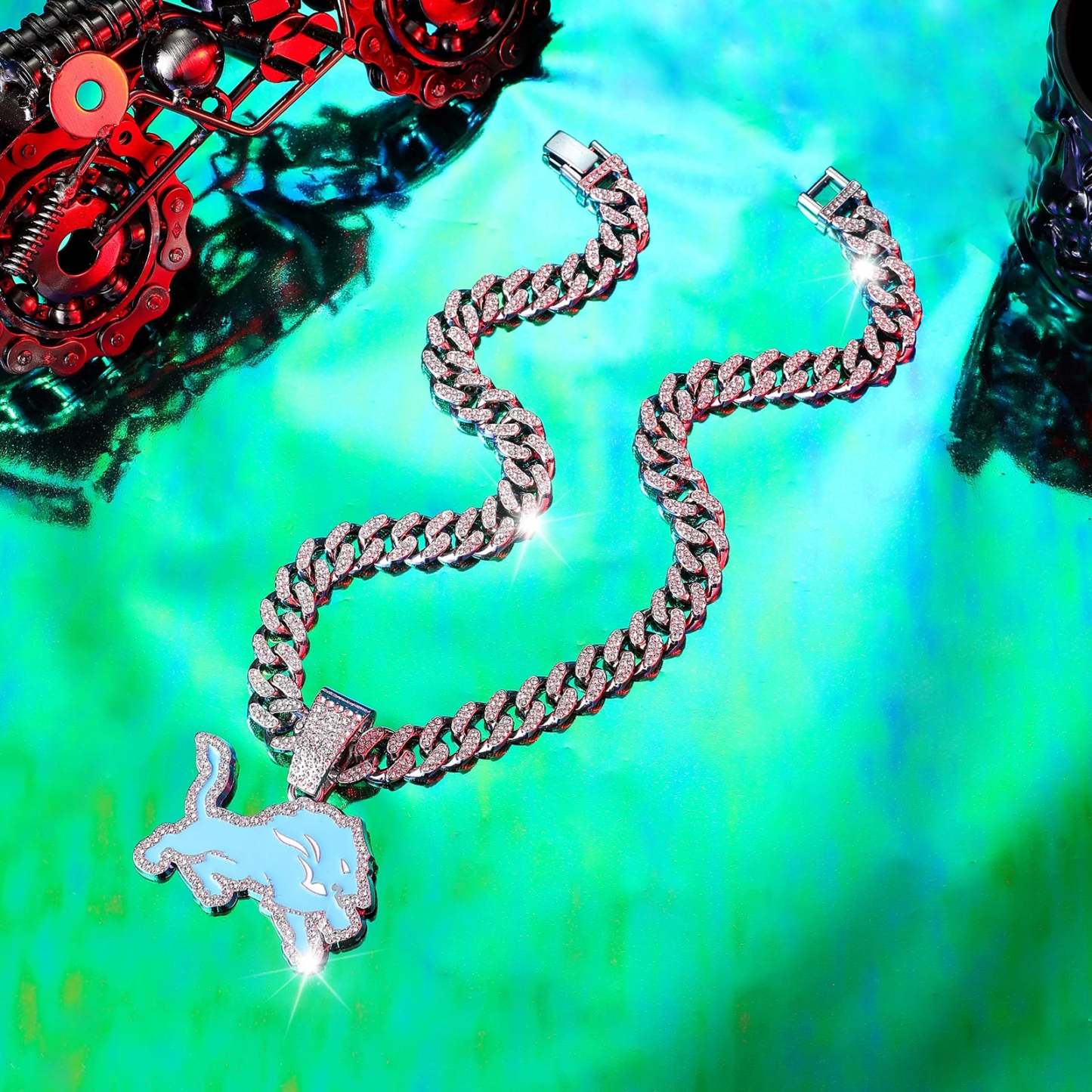 Striking Detroit Lions pendant featuring brilliant CZ stones