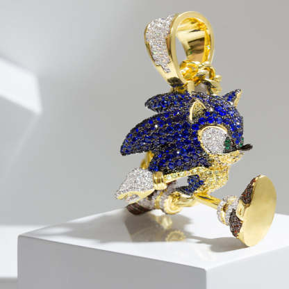 By popular demand, we introduce full character designs to the official Sonic x King Ice collab. This piece features hundreds of stones as well as polished surfaces to capture every detail. Inspired by his signature speed, Sonic is seen in a mid-run pose that draws inspiration from both classic and modern games.