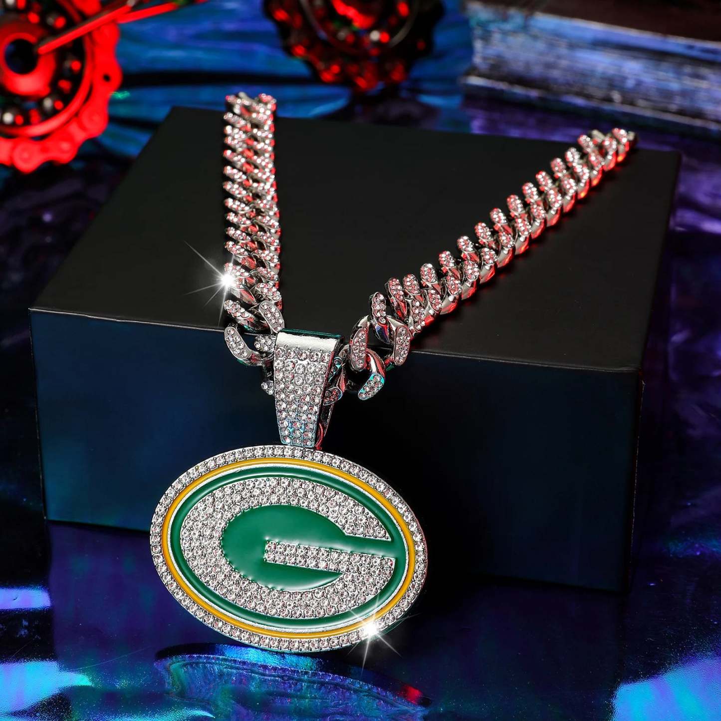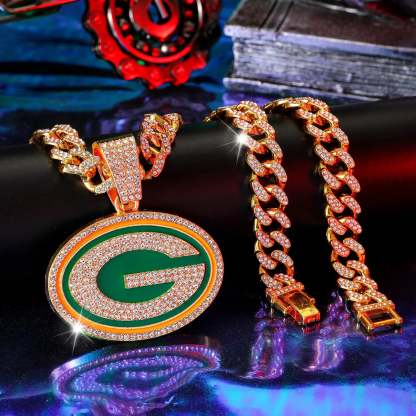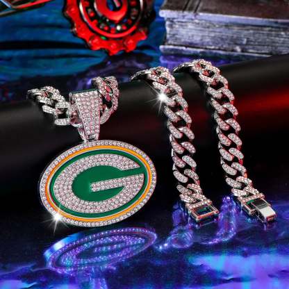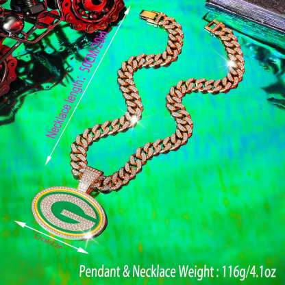 Green Bay Packers Pendant with 20" Cuban Link Necklace