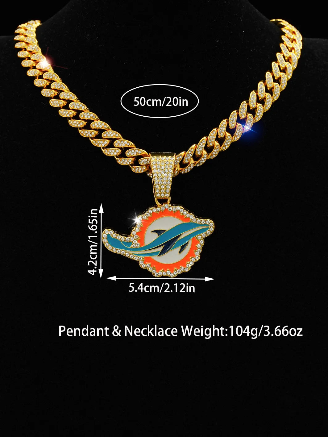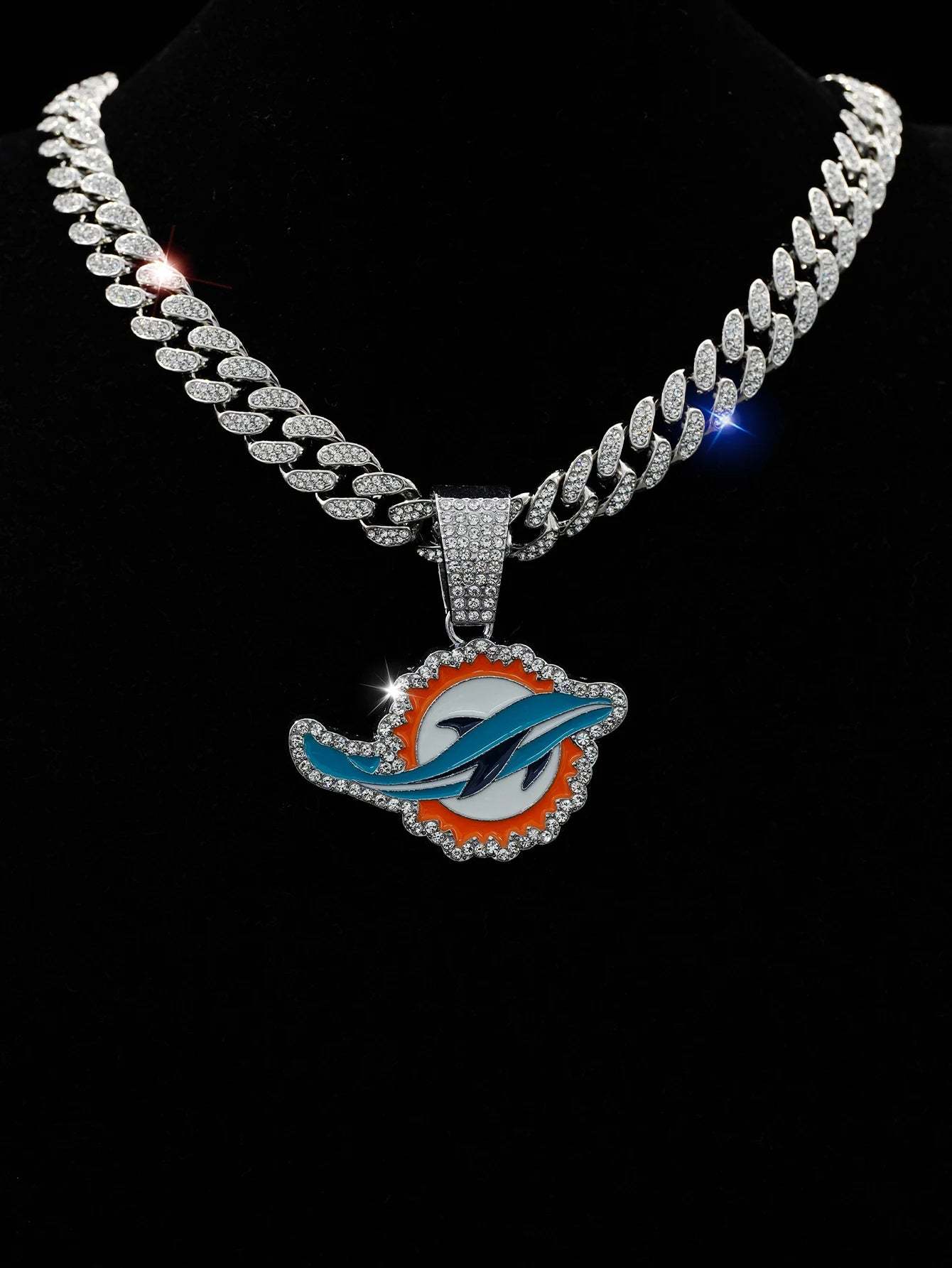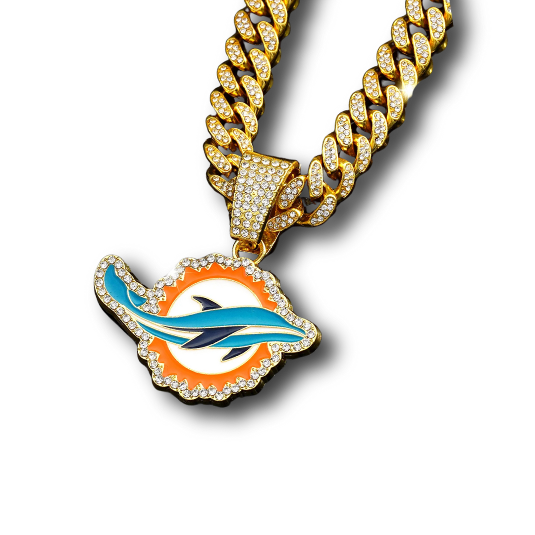 Eye-catching Miami Dolphins pendant with radiant CZ stones