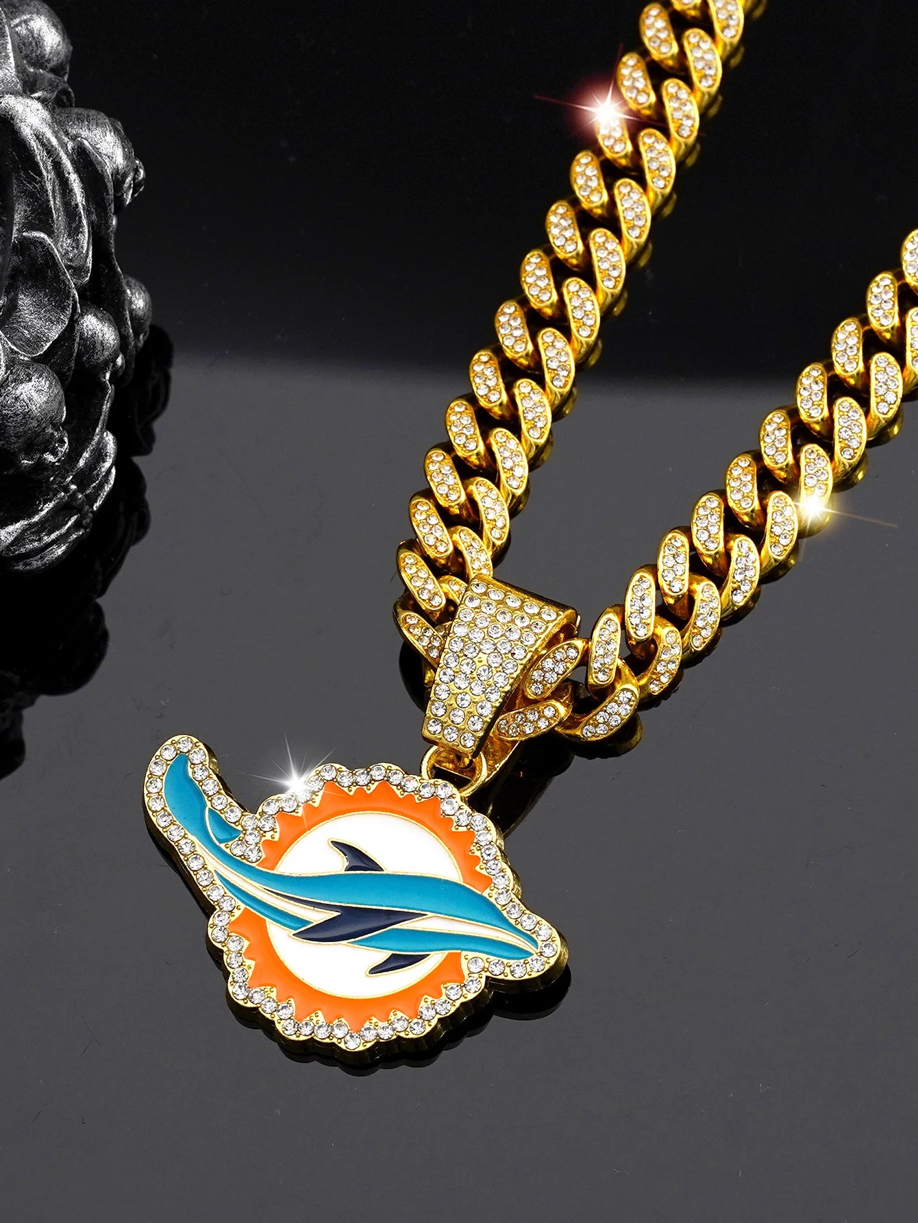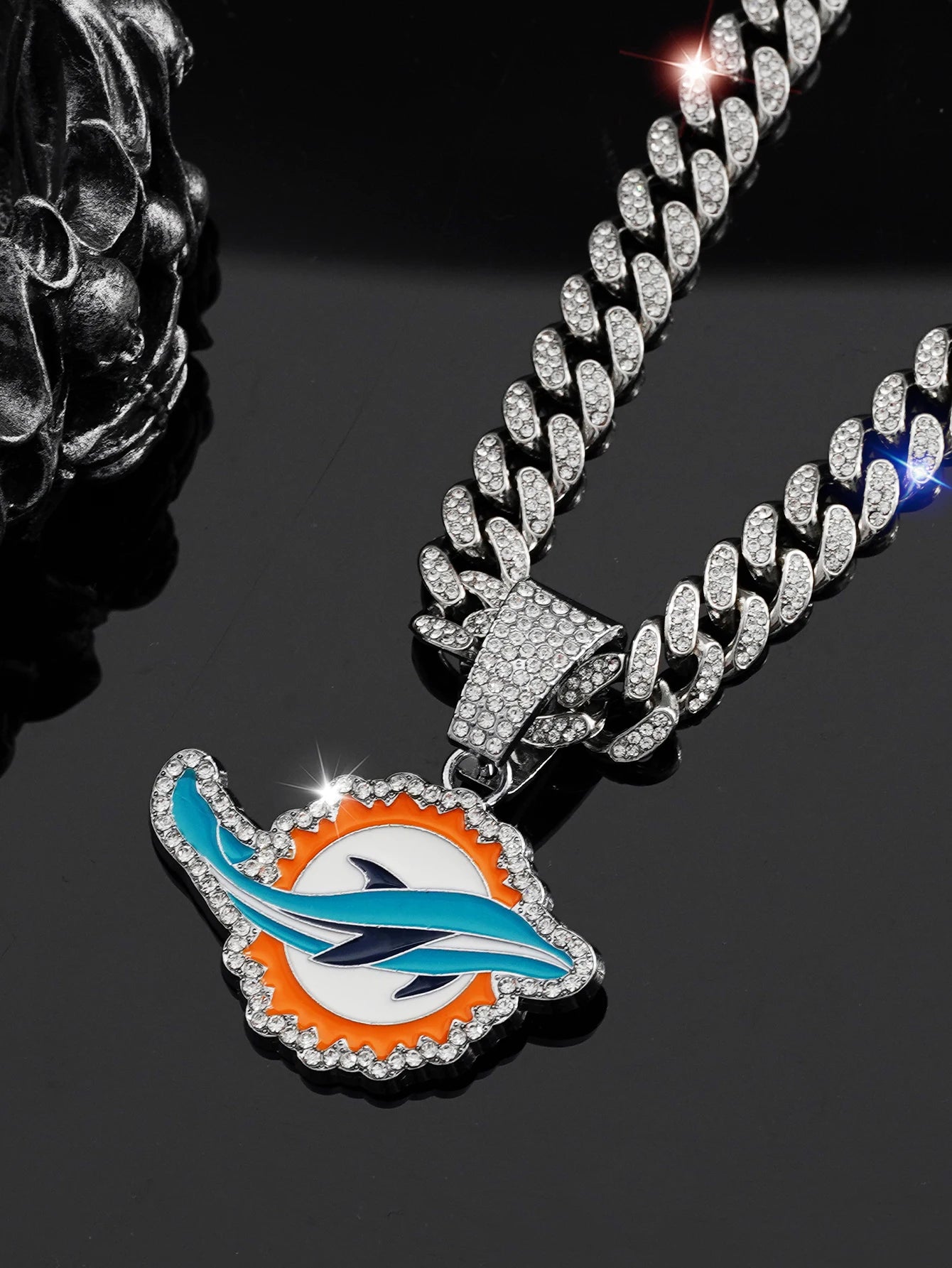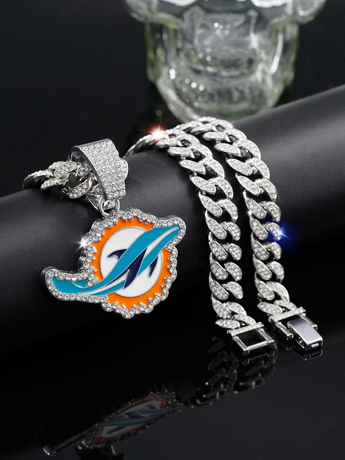 Eye-catching Miami Dolphins pendant with radiant CZ stones