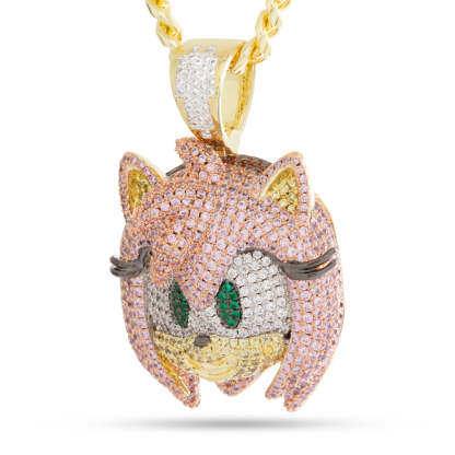 Amy Rose is known for her impressive hammer skills as well as being Sonic's biggest admirer. This piece features multiple layers of hair around her face, each packed with hundreds of handset stones, green eyes, and 3D eyelashes.